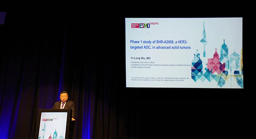 10月23日,Ag尊龙凯时医药创新药、HER3靶向ADC药物SHR-A2009治疗晚期实体瘤的I期研究亮相2023 ESMO大会简短口头报告现场5。该研究由广东省人民医院的吴一龙教授牵头开展,吴一龙教授在现场公布该研究的重要进展。研究结果显示,SHR-A2009在经治晚期实体瘤患者中显示出可控的安全性和令人鼓舞的抗肿瘤活性。目前评估更高剂量的SHR-A2009在选定癌症类型(NSCLC和其他实体肿瘤)中作用的试验正在进行中。